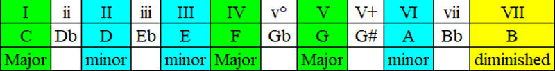 If you know your keys and the circle of fifths, you know that each chord in every key has its own Roman numerical interval value: