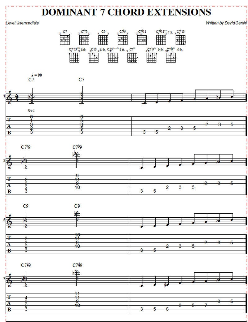 These are some of the types of extension chords that come from the common “7th” chords. In some cases, these chords can be used as alternatives to the common 7th chord, because they have the added notes to give them more nuance and color.